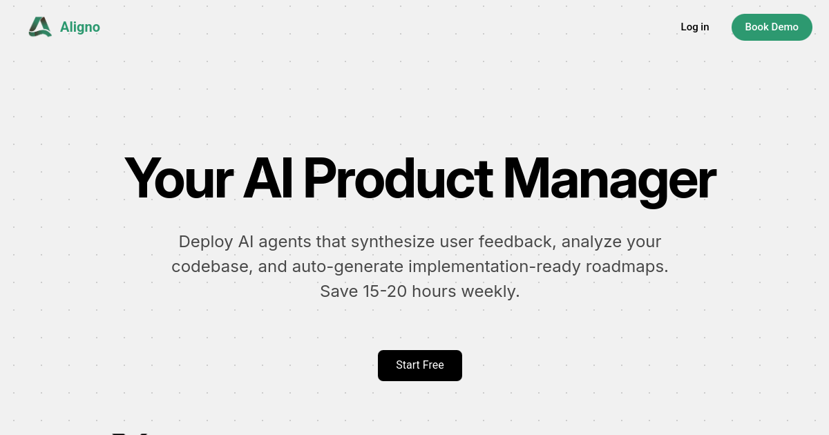 Aligno AI는 사용자 피드백, 제품 로드맵, 그리고 실제 코드베이스를 하나로 묶어주는 똑똑한 에이전트예요. 인터뷰 내용, 고객 문의 티켓, 슬랙 대화 같은 다양한 피드백을 업로드하면, Aligno AI가 핵심 테마를 분석하고 증거 기반의 로드맵을 자동으로 만들어주죠.