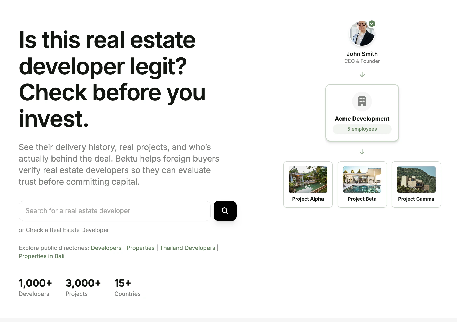 투자자가 자본을 투입하기 전, 부동산 개발사의 신뢰성을 평가하도록 돕습니다. 이를 통해 잠재적 위험을 줄이고 안전한 투자를 지원합니다.