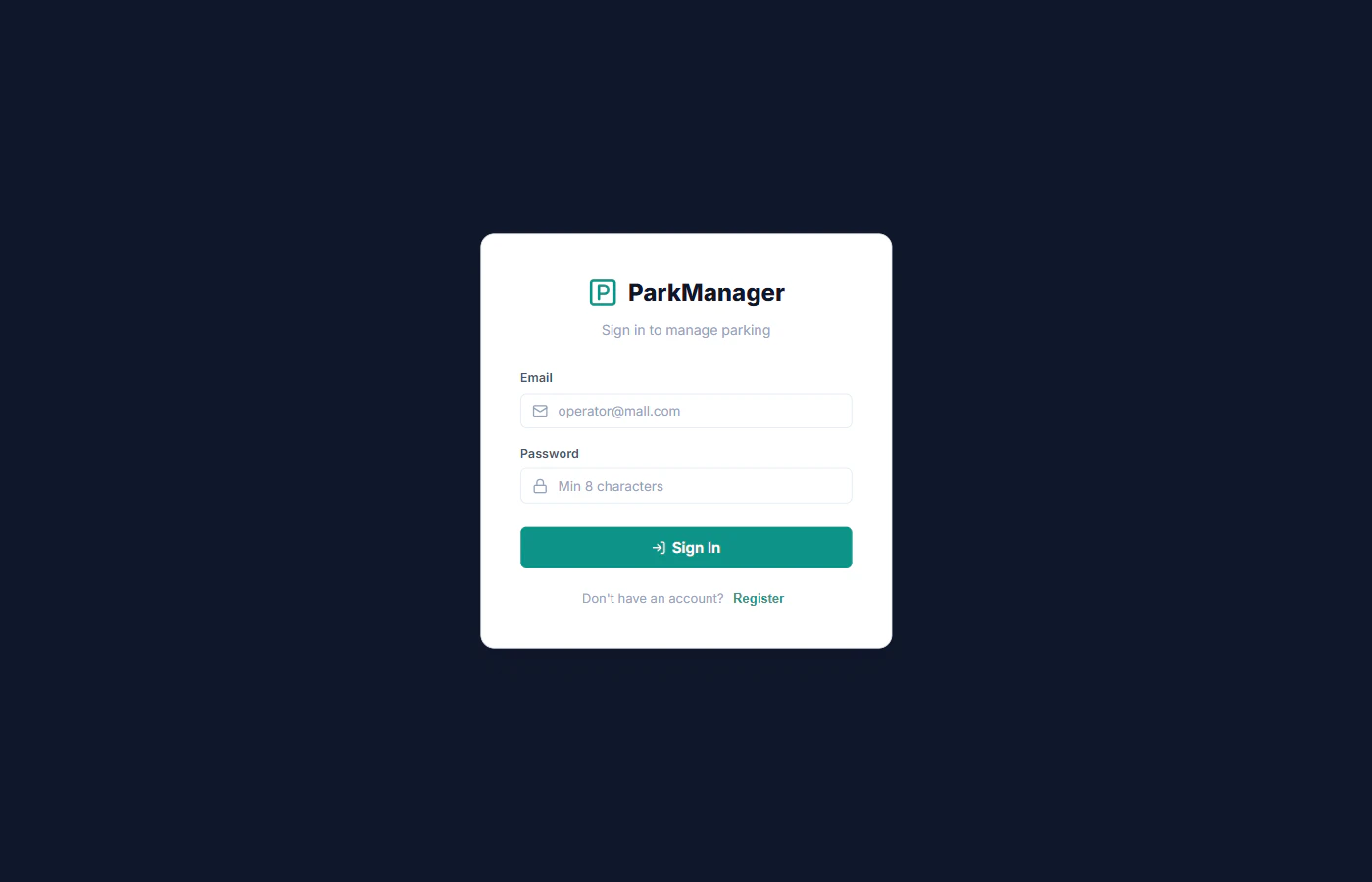 쇼핑몰 및 주차 단지를 위한 스마트 주차 관리 시스템입니다. React 19 PWA와 Electron으로 구축되어 오프라인 환경에서도 원활하게 작동합니다. 실시간 주차 공간 추적, Dexie.js 로컬 DB를 통한 오프라인 우선 기능 및 Appwrite 클라우드 동기화를 지원하며, 설치형 PWA 또는 네이티브 Electron 데스크톱 앱으로 사용할 수 있습니다.