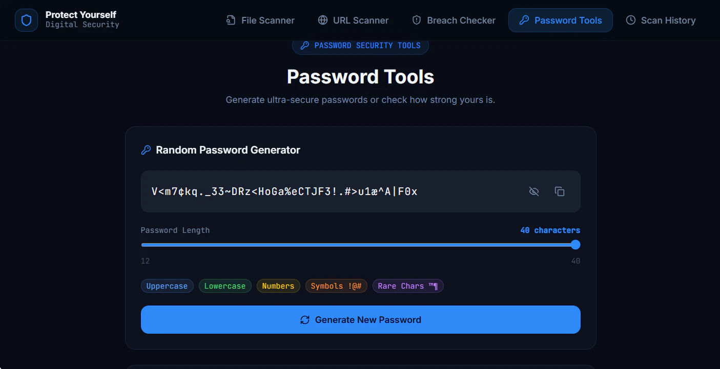 파일과 웹사이트를 심층 분석하여 숨겨진 위협, 피싱, 데이터 추적을 탐지하는 고급 디지털 보안 스캐너입니다. 상세한 비밀번호 생성, 계정 찾기, 데이터 유출 감지 기능을 제공하여 바이러스의 우발적 다운로드를 방지하고 악성 파일을 정확하고 안전하게 스캔하여 사용자를 보호합니다.