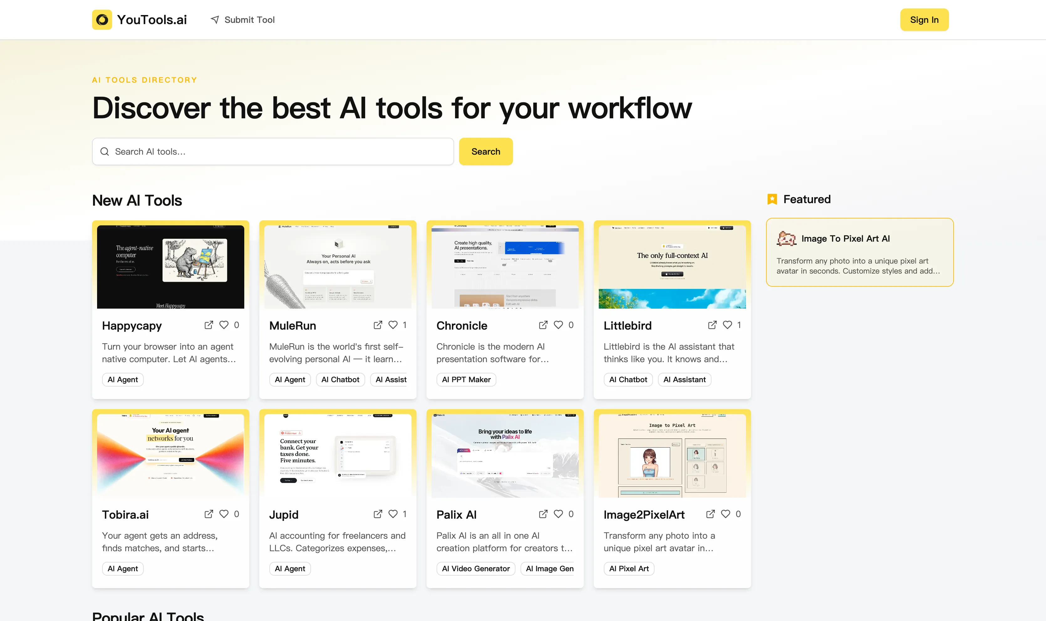 다양한 AI 도구를 검색하고 비교할 수 있습니다. 새로 출시된 도구를 확인하고, 인기 있는 도구를 탐색하며, 태그별 필터링을 통해 워크플로우에 맞는 도구를 선택할 수 있습니다.