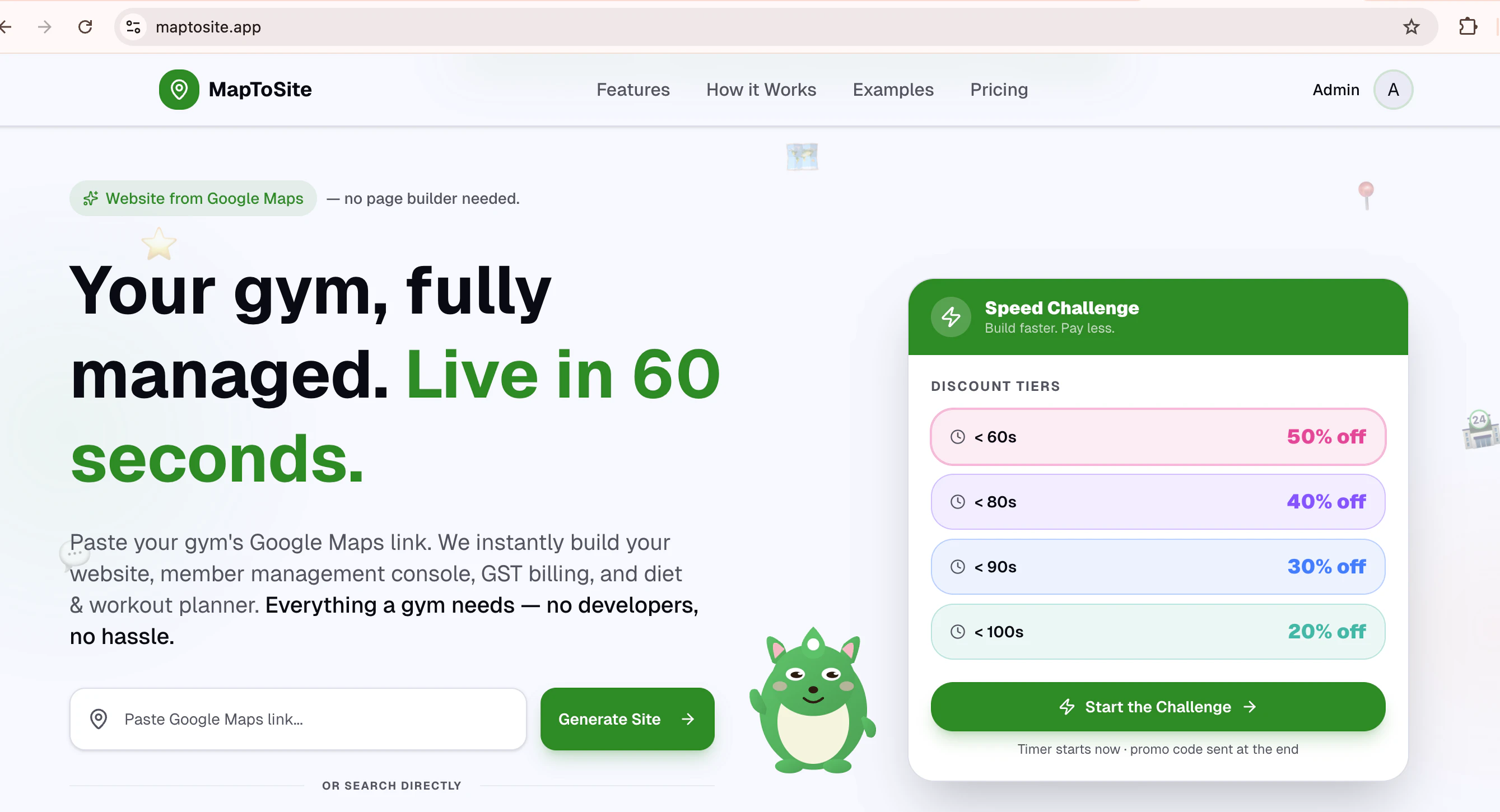 기존에 운영하던 구글 지도 비즈니스 페이지가 있다면, 이제 별도의 웹사이트 제작 없이도 이를 활용해 보세요. MapToSite는 어떤 구글 지도 비즈니스 페이지든 실제 리뷰와 사진을 그대로 담아, 근사한 원페이지 CRM 및 이커머스 사이트로 단 몇 초 만에 변환해 줍니다.