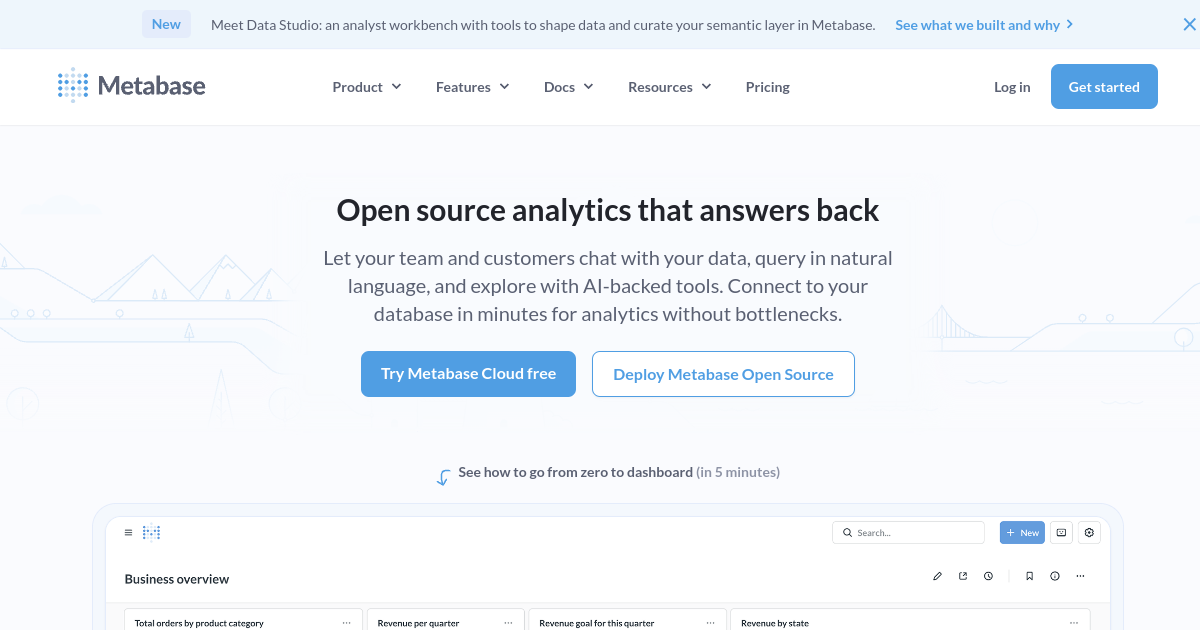 메타베이스 클라우드는 오픈소스 기반의 데이터 대시보드 솔루션이에요. 회사 내 누구라도 데이터를 쉽게 분석하고 인사이트를 얻을 수 있도록 돕죠. 복잡한 설치나 엔지니어 도움 없이도 메타베이스 클라우드만 있으면 우리 회사 데이터를 바로 활용할 수 있어요. 데이터 분석, 더 이상 어렵게 생각하지 마세요!