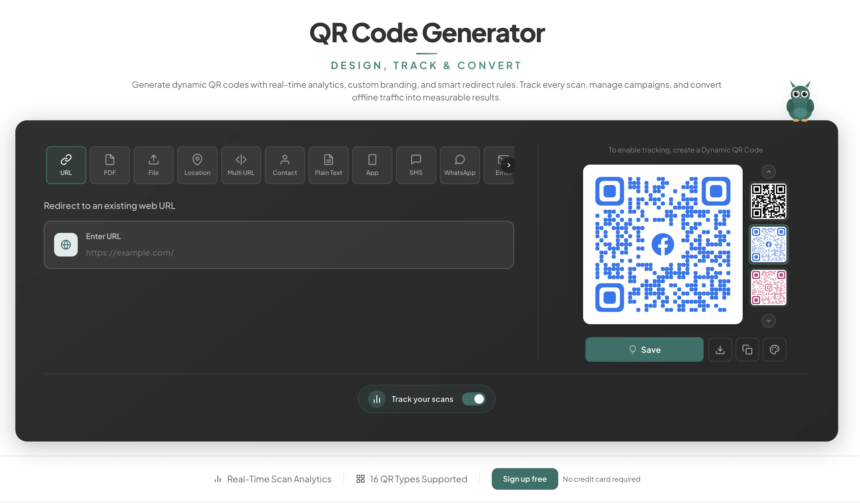 분석 및 맞춤 디자인을 제공하는 무료 QR 코드 생성 도구