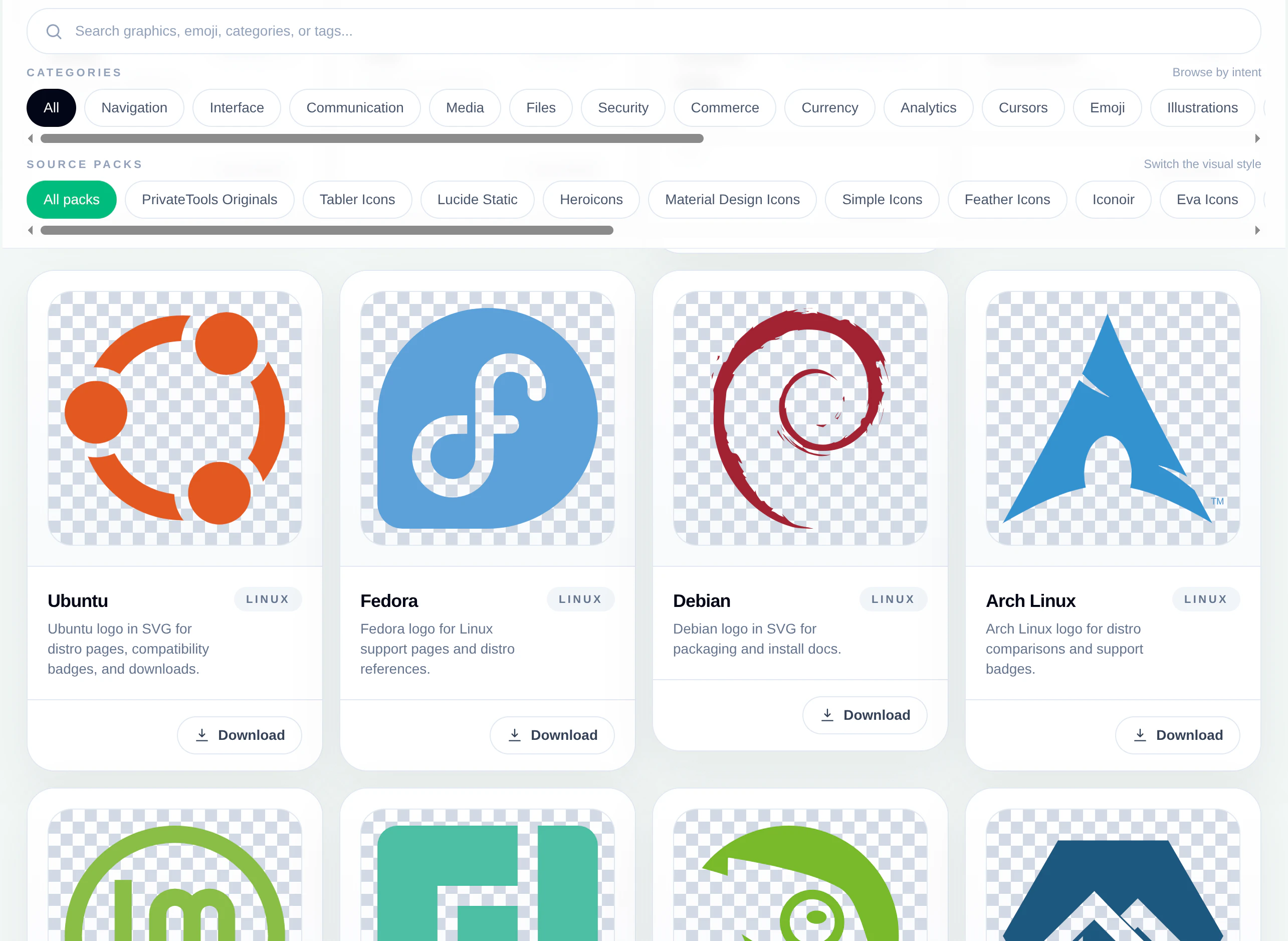 현대적인 제품 디자인, 마케팅 및 편집 작업을 위한 엄선된 SVG 그래픽 라이브러리입니다. 일러스트레이션, 이모지 아트워크, 브랜드 및 소셜 로고, 국기, 의료 벡터, 시민 상징, 자연 그래픽, 운송 기호, 커서 글리프, 통신 마크, 미디어 및 보안 자산, 상업 아트워크, 분석 그래픽 등을 브라우저에서 미리 보고, 색상을 사용자 지정하며, 원본 SVG 코드를 복사하고, 로그인이나 복잡한 절차 없이 각 파일을 다운로드할 수 있습니다.