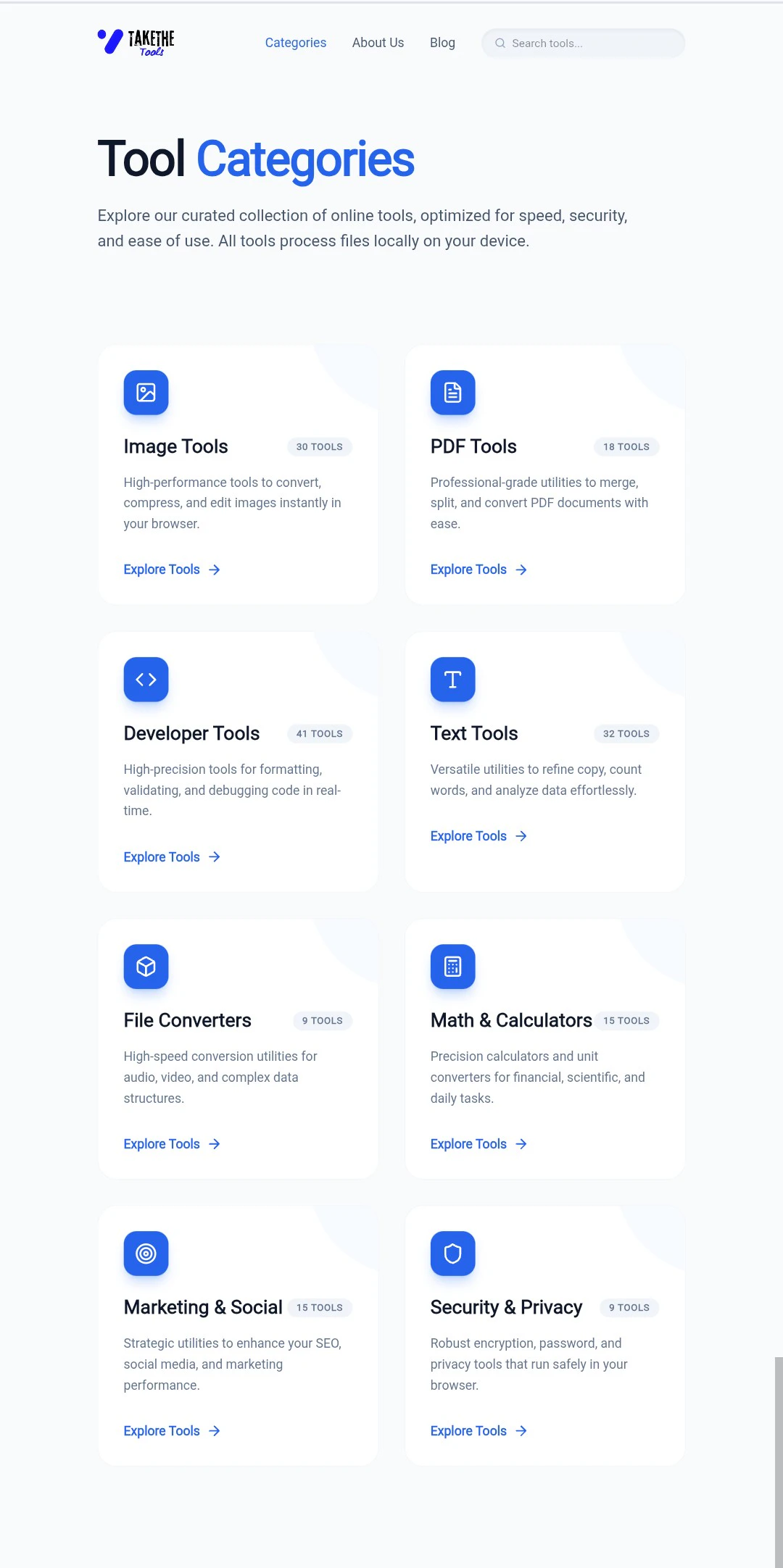 개발자, 디자이너, 일반 사용자를 위한 169가지 이상의 도구를 제공하는 올인원 무료 플랫폼입니다. 이미지 변환 및 압축, PDF 병합, 분할, 보호 기능은 물론 JSON, JWT, 정규식 등 개발자 도구와 텍스트 도구, 계산기 등을 100% 무료로 이용할 수 있습니다. 회원가입 없이 브라우저에서 작동하며, 모든 파일은 사용자 기기 내에서 처리되어 보안이 유지됩니다.