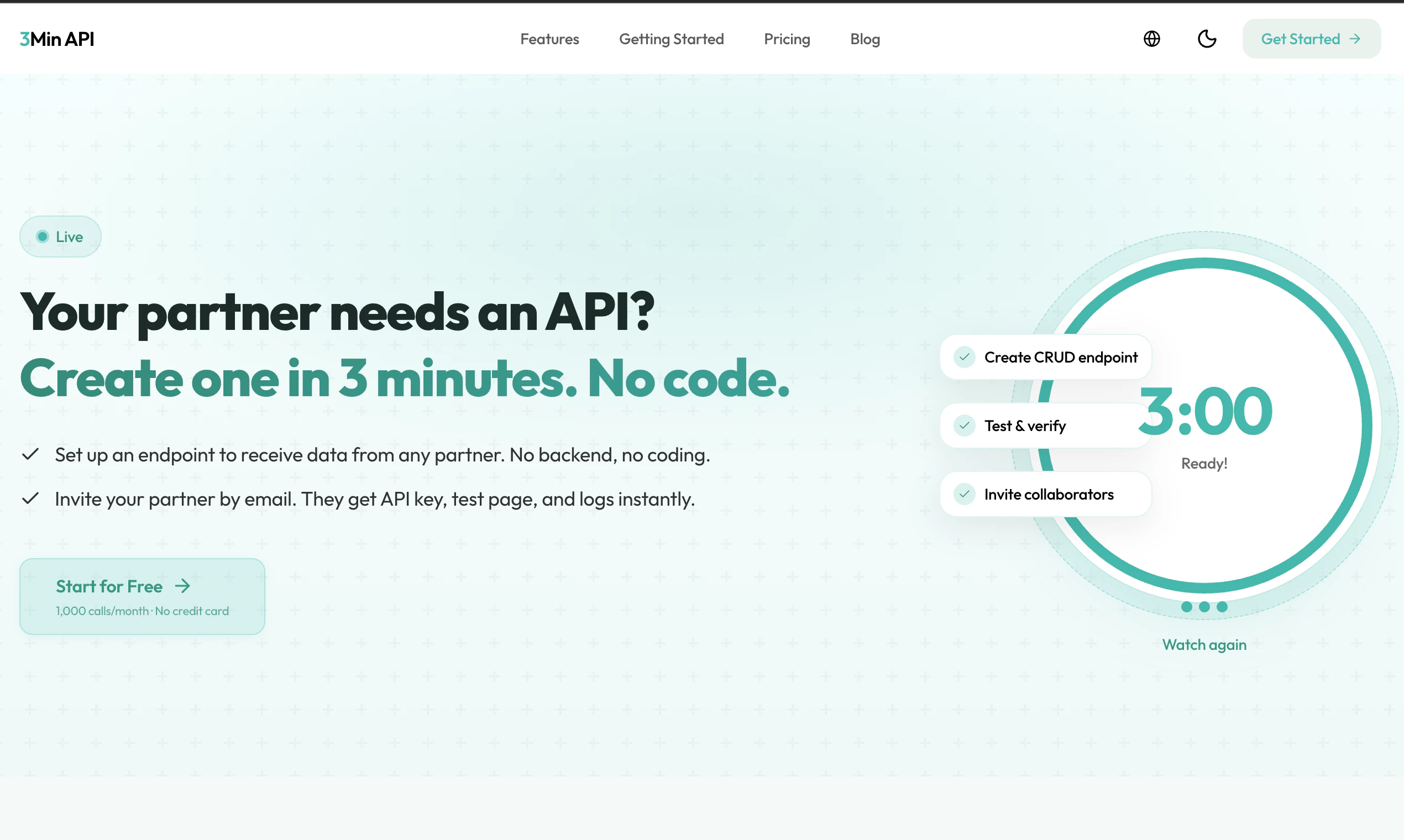 3분 만에 CRUD API 엔드포인트를 생성할 수 있습니다. 백엔드 개발이 필요 없으며, 스키마만 정의하면 유효성 검사, 저장, 로깅, 웹훅 전송, 아카이빙이 자동으로 처리됩니다. 자동 웹훅 재시도, 실시간 로그 및 통계 대시보드, 장기 페이로드 아카이빙, 샌드박스 및 프로덕션 환경, 파트너 통합을 위한 협업 키, 자연어 API 관리를 위한 MCP 서버 지원 등의 기능을 제공합니다. 무료 티어가 있으며 신용카드 정보는 필요하지 않습니다.