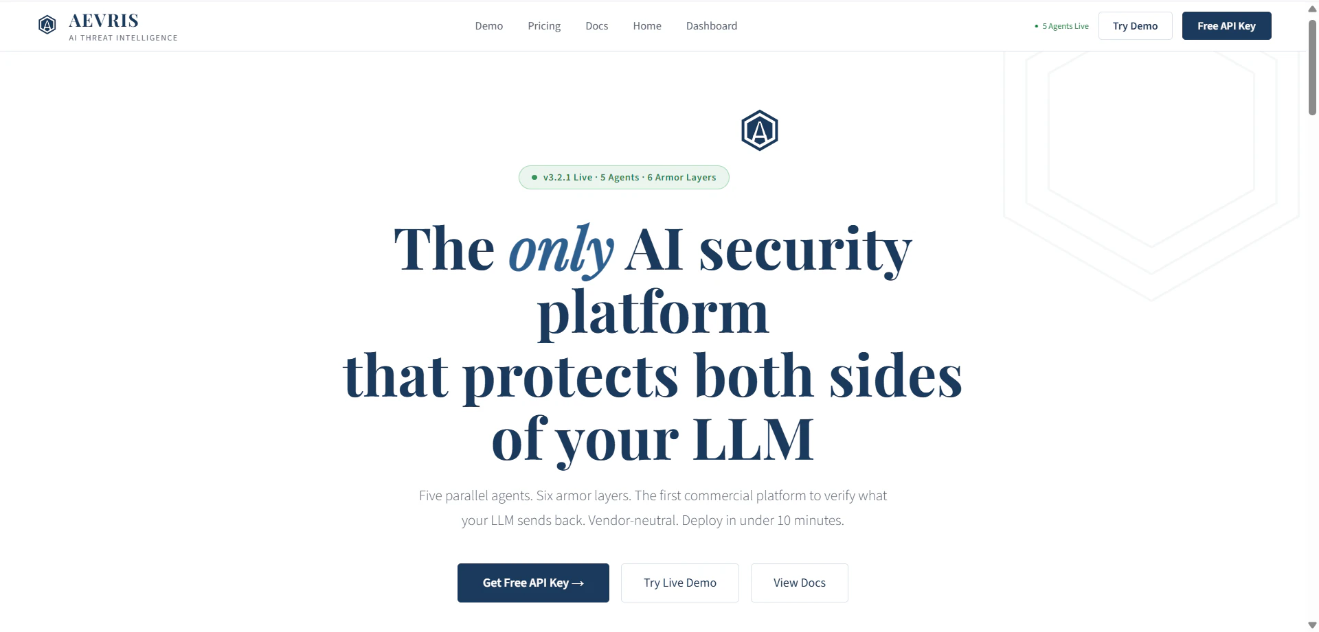다중 에이전트 AI 위협 탐지 API로, LLM의 입력과 출력을 모두 보호하는 유일한 플랫폼입니다. 다섯 가지 특화된 에이전트가 모든 프롬프트에서 병렬로 실행됩니다. 생성 후 LLM 응답을 스캔하는 출력 정렬 검증, 런타임 행동 모니터링을 위한 AGI 정렬 가드, 에이전트 컨텍스트에 들어가기 전에 도구 오염을 탐지하는 라이브 MCP 도구 검사 등 세 가지 업계 최초 기능을 제공합니다. 벤더 중립적인 이 플랫폼은 월 500회 스캔까지 무료로 이용할 수 있습니다.