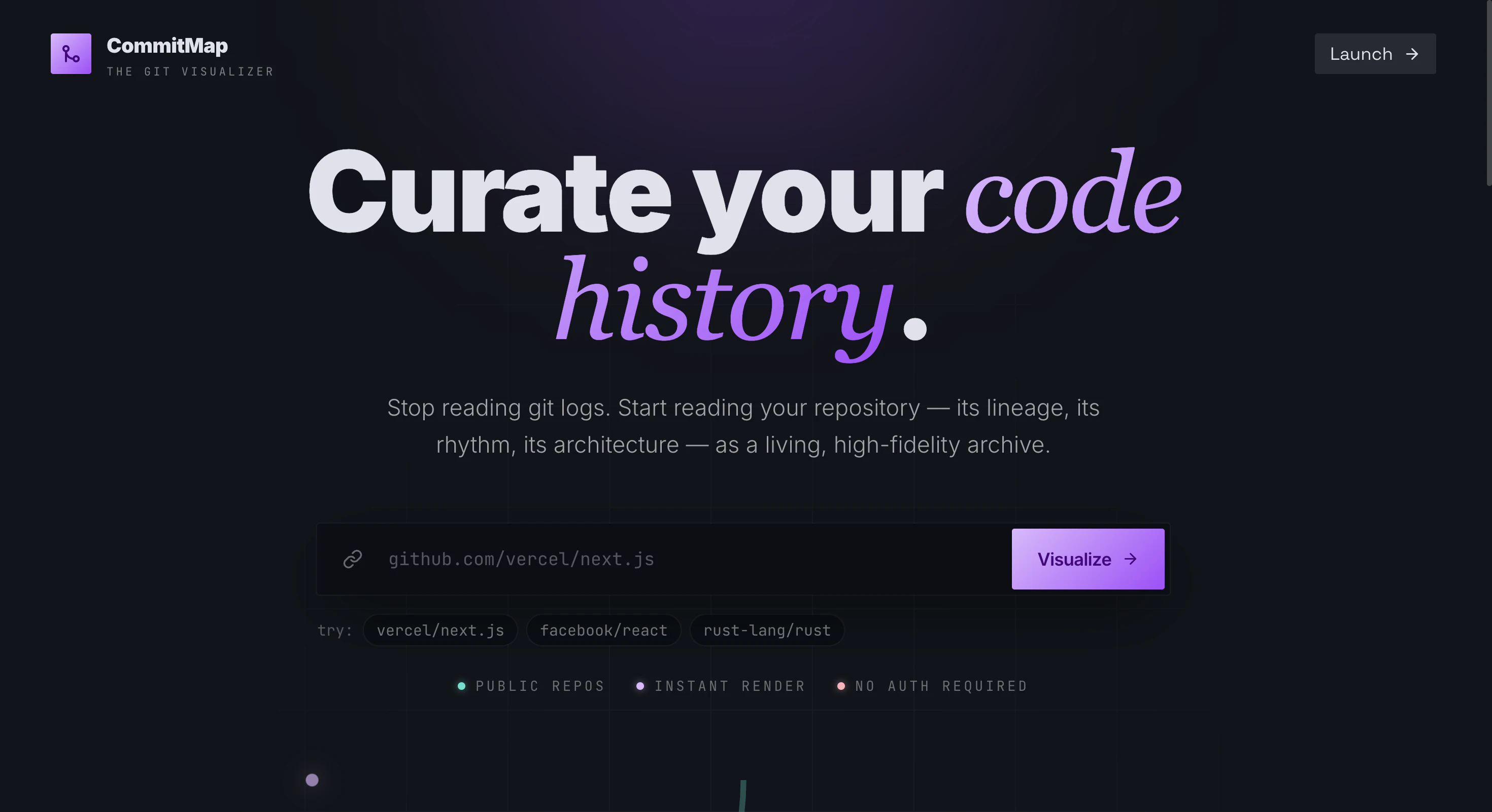 CommitMap은 코드 기록을 꼼꼼하게 관리하고 싶은 개발자를 위한 서비스입니다. 저장소의 디지털 아카이브를 만들어 개발 이력을 체계적으로 보존하고 활용할 수 있게 돕습니다.