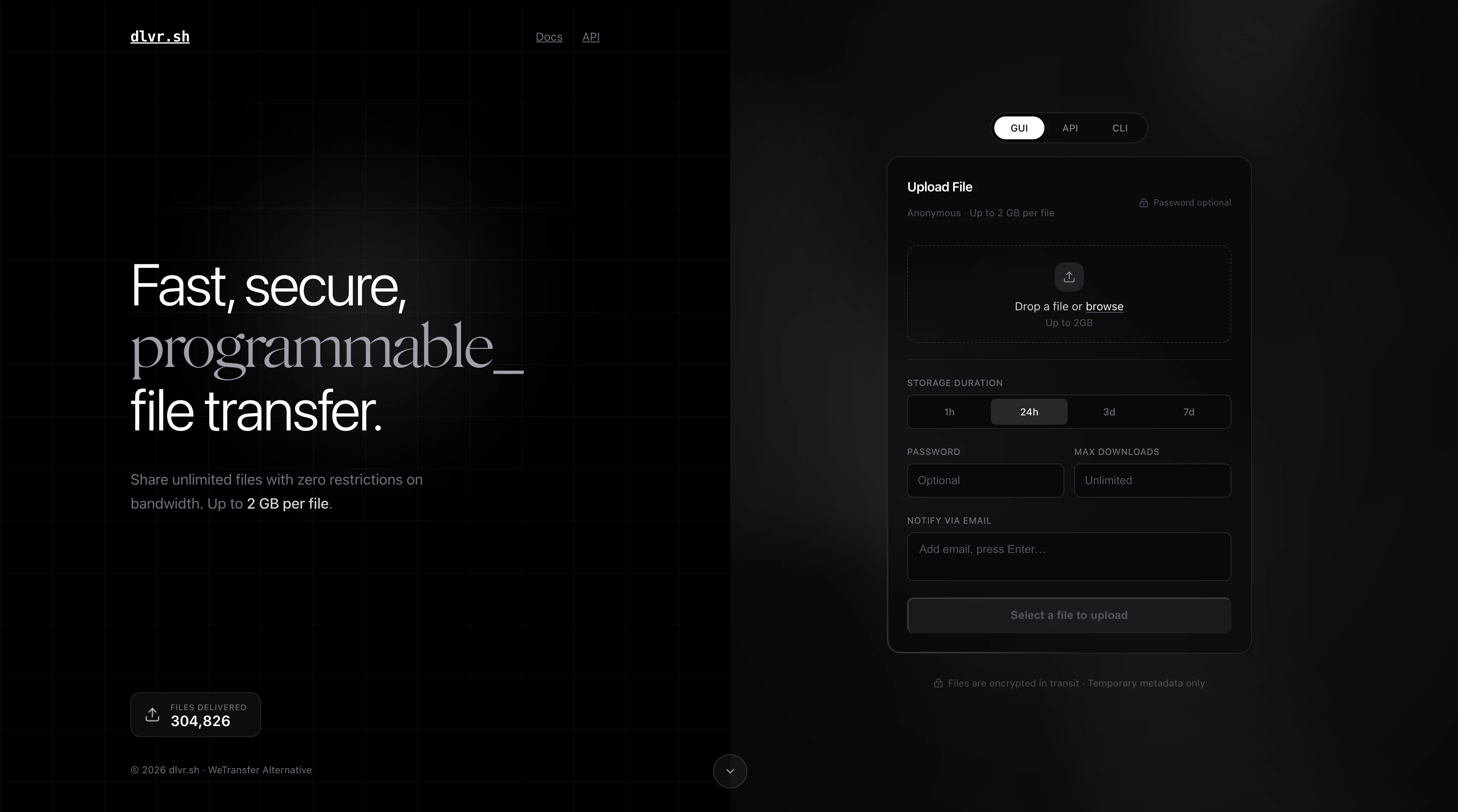 개발자를 위한 파일 공유 서비스, dlvr.sh를 만나보세요. 익명으로 파일을 공유하고 만료일, 비밀번호 설정, 다운로드 횟수 제한까지 가능해요.