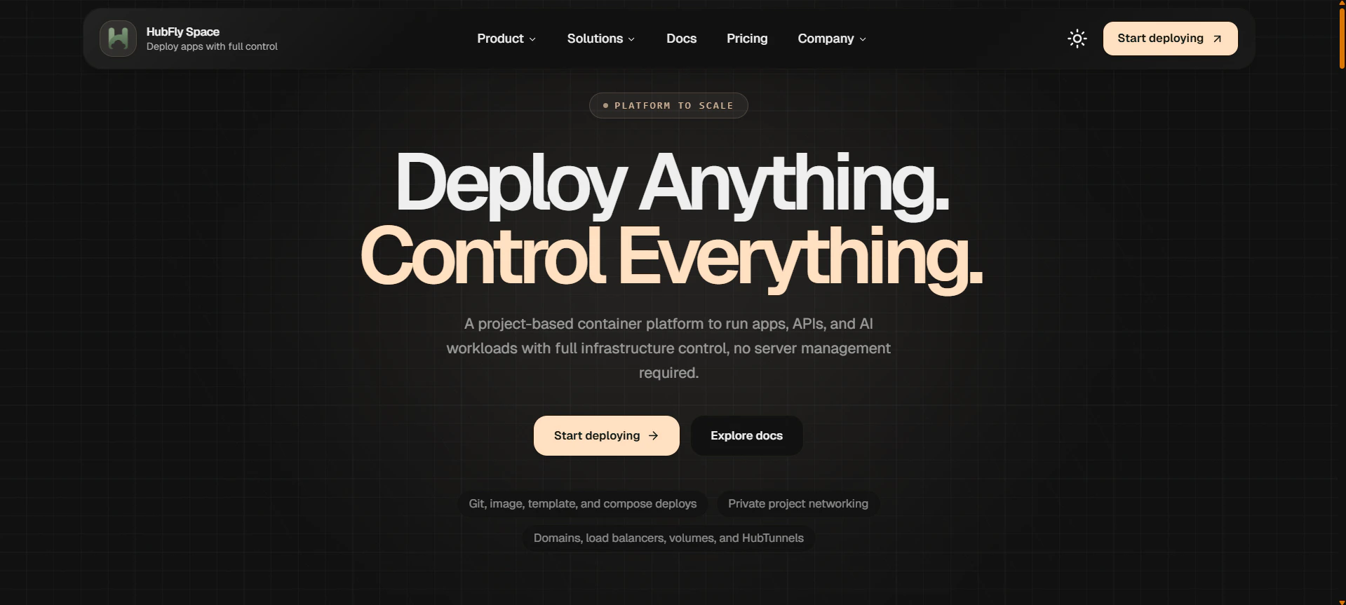 수개월간의 개발과 테스트를 거쳐, 복잡성 없이 비용 효율적으로 무엇이든 배포하고 완벽하게 제어할 수 있는 클라우드 플랫폼을 완성했습니다. GitHub, 템플릿 또는 Docker 레지스트리에서 직접 배포할 수 있으며, CLI를 통한 스마트 빌더로 "hubfly deploy" 명령어를 통해 몇 초 만에 배포가 가능합니다. 앱의 스케일 업/다운을 자유롭게 제어하고, 파일 브라우저를 통해 영구 스토리지를 생성할 수 있습니다.