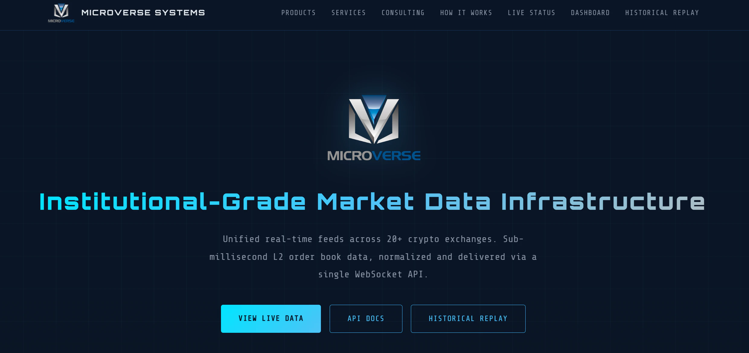 기관급 암호화폐 시장 데이터 인프라를 제공합니다. C++ 피드 핸들러가 21개 거래소에 웹소켓으로 연결하여 L2 오더북 데이터를 정규화하고, 통합 웹소켓 API를 통해 서브 밀리초 지연 시간으로 배포합니다.
