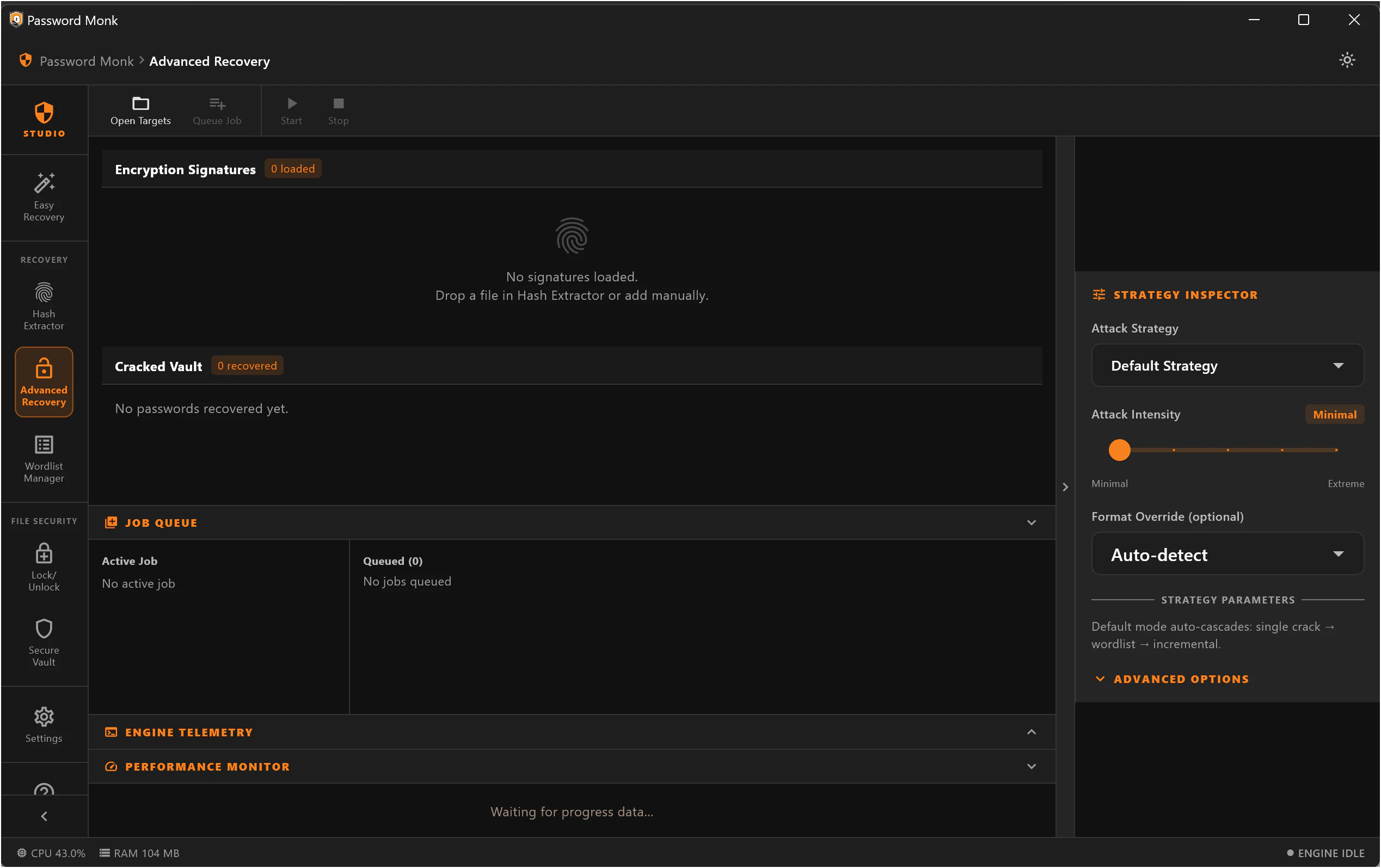 비밀번호를 잊어버렸나요? Password Monk가 GPU 가속으로 ZIP, RAR, PDF, Office 파일 등 다양한 파일의 비밀번호를 찾아드립니다. 무료로 사용할 수 있어요.