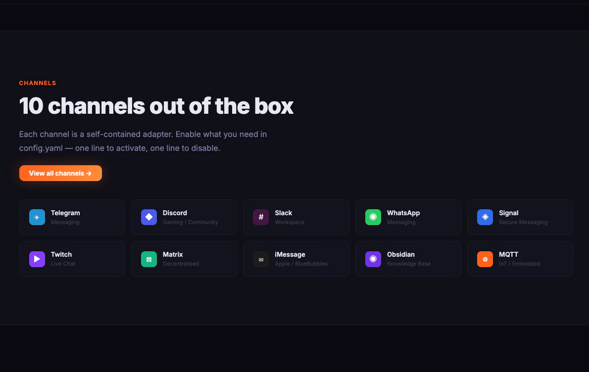 단일 바이너리로 10개 채널과 무한한 연결성을 지원합니다. Go로 개발되어 Node.js 기반의 유사 도구보다 훨씬 작은 용량과 빠른 시작 속도, 적은 메모리 사용량을 자랑합니다. 외부 의존성 없이 핫 리로드, MQTT, APNs/FCM 기능을 내장하여 개발자 도구, 백엔드, 고성능 시스템, DevOps, 마이크로서비스, IoT 환경에 최적화된 성능을 제공합니다.