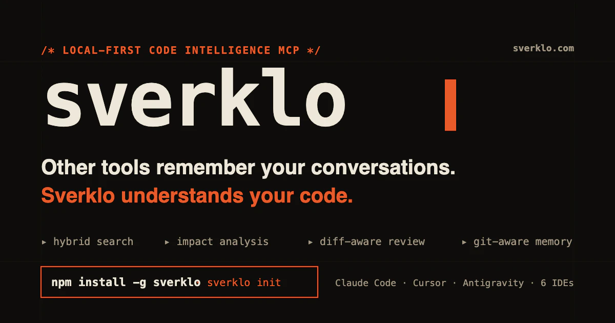 AI 코딩 어시스턴트(Claude Code, Cursor, Windsurf)에 심볼 그래프, 하이브리드 검색, diff 인식 PR 검토 기능을 제공하는 로컬 우선 MCP 서버입니다. 코드를 클라우드로 전송할 필요 없이 로컬에서 모든 작업을 처리합니다. MIT 라이선스로 제공되며, 단일 SQLite 파일과 20가지 MCP 도구를 포함합니다.