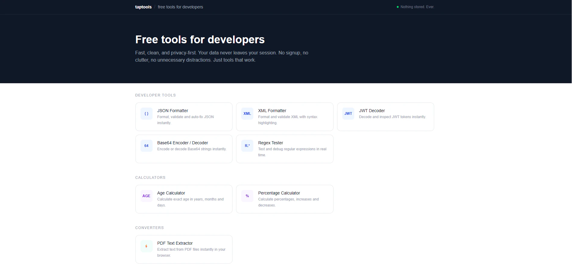 개발자의 일상적인 워크플로우 속도를 높이도록 설계된 가볍고 실용적인 도구들을 모아 놓았습니다. 개발자가 흐름을 끊지 않고 작지만 반복적인 작업을 신속하게 처리하도록 돕습니다. 단순성, 속도 및 유용성을 염두에 두고 제작되었습니다.