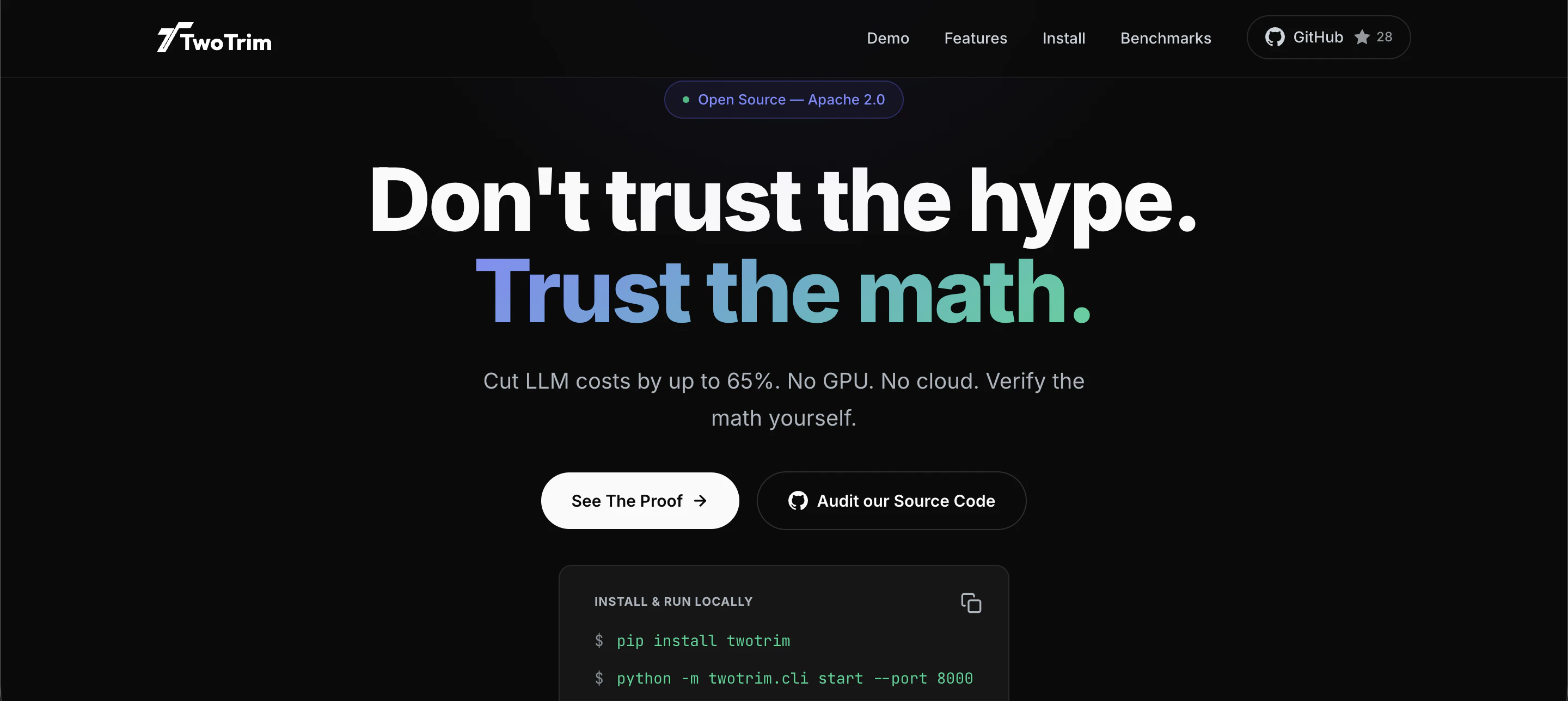 정확도 손실 없이 AI 토큰 비용을 최대 65%까지 절감할 수 있습니다. GPU나 코드 변경 없이 LLM API를 위한 수학적 프롬프트 압축을 제공합니다.