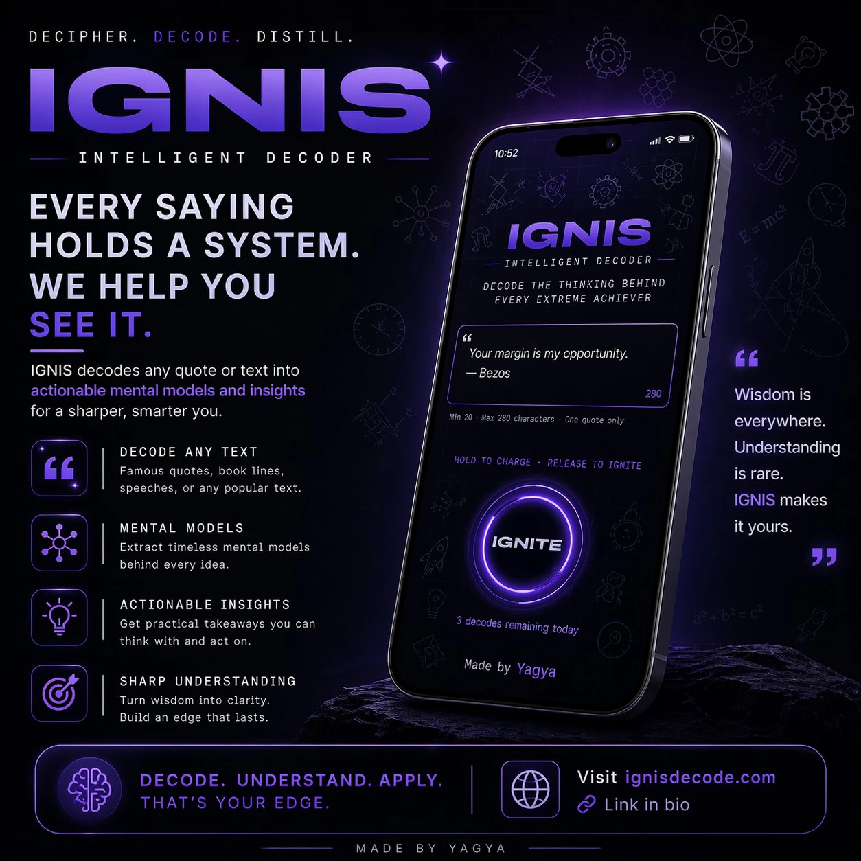 수많은 책을 읽고 명언에 밑줄을 그었지만, 정작 중요한 순간에는 다른 사람들과 똑같이 생각하고 있지는 않으셨나요? 이 도구는 역사상 위대한 인물들의 명언 뒤에 숨겨진 멘탈 모델을 해독합니다. 그들이 무엇을 말했는지가 아니라, 실제로 어떻게 생각했는지를 파악하여 단순히 그들의 말을 수집하는 것을 넘어 그들처럼 사고할 수 있도록 돕습니다.