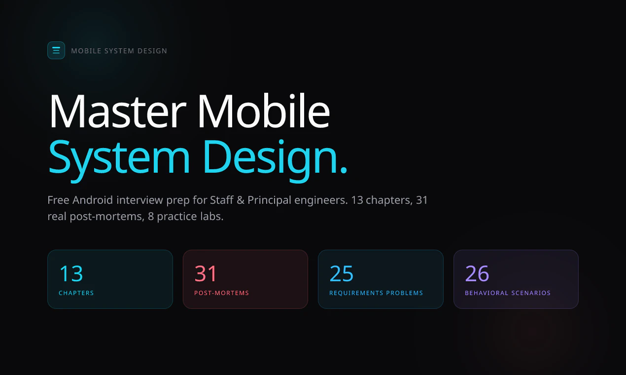 안드로이드 개발자로서 한 단계 더 나아가고 싶으신가요? 이 자료는 스태프 및 Principal 레벨의 안드로이드 인터뷰를 성공적으로 통과하는 데 필요한 모든 것을 담았습니다.