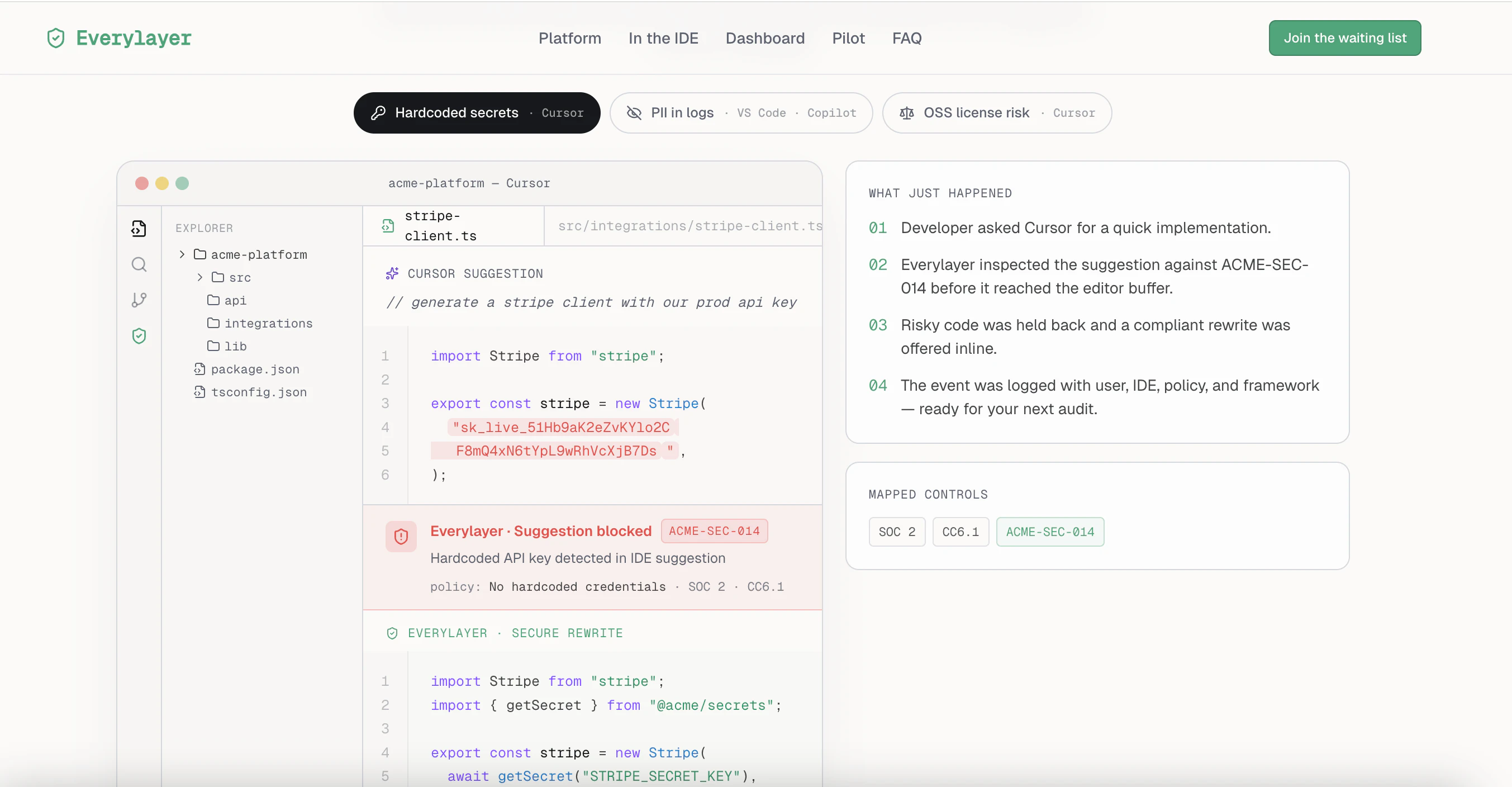 AI 기반 코딩을 위한 보안, 개인 정보 보호 및 법률 정책을 중앙 집중화합니다. Copilot, Cursor, VS Code에 규칙을 동기화하고, 감사 준비가 된 증거를 생성하여 위험한 AI 코드를 배포 전에 차단합니다.