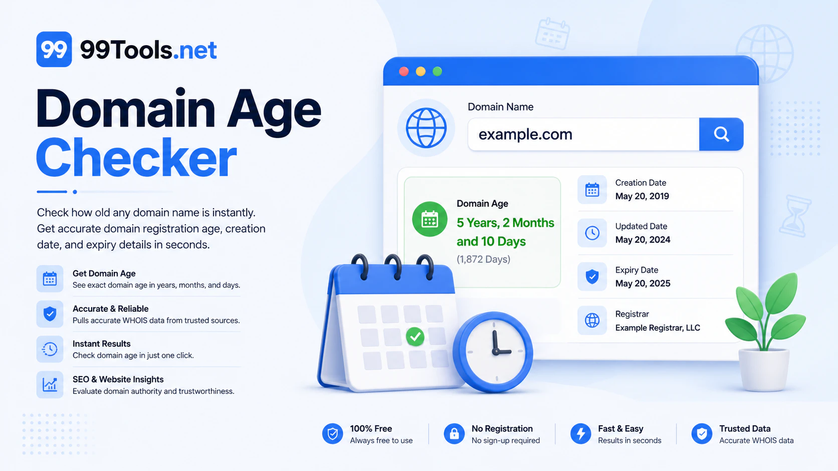 수많은 도메인의 이력을 일일이 확인하는 번거로움을 해결합니다. SEO 전문가와 도메인 헌터가 수천 개의 URL을 즉시 분석할 수 있도록 돕습니다. 정확한 등록일, 만료 정보, 도메인 연령 데이터를 깔끔하고 내보내기 가능한 형식으로 제공하여 만료된 도메인을 찾거나 대규모 포트폴리오를 감사할 때 필요한 속도와 정확성을 제공합니다.