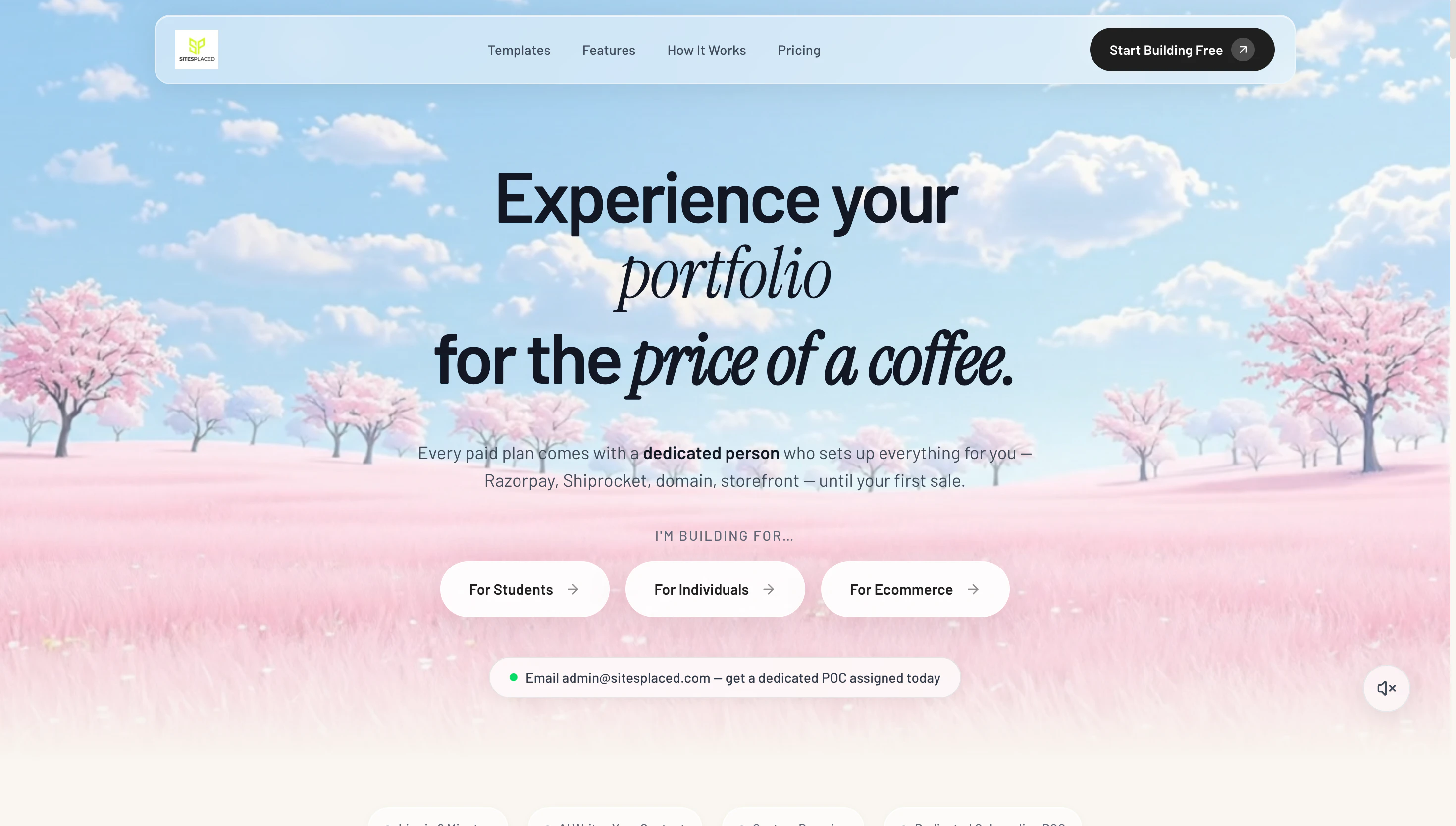 AI가 생성한 콘텐츠로 전환율 높은 포트폴리오나 온라인 상점을 구축하세요. 프리랜서, 사진작가, 개발자, 회계사 및 소규모 비즈니스를 위한 템플릿을 제공합니다. 코딩 없이 2분 만에 웹사이트를 게시할 수 있으며, 학생 요금제는 5달러 미만부터 시작합니다.