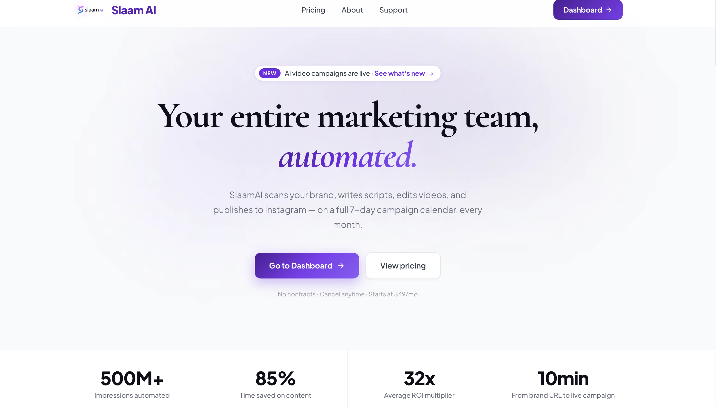 AI 기반 마케팅 자동화 플랫폼입니다. 콘텐츠 생성, 영상 제작, 광고 관리, 인스타그램 게시까지 모든 과정을 자동으로 처리하여 마케팅 부담을 덜어줍니다.
